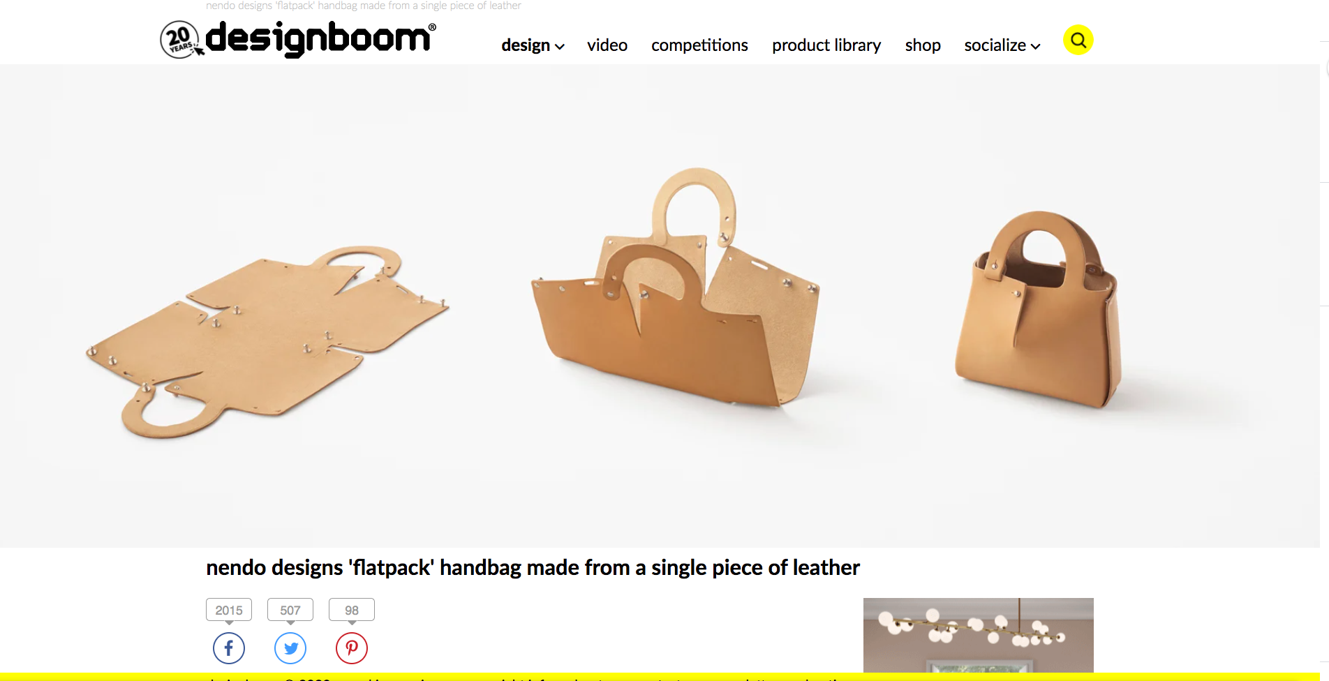 japanese studio nendo has designed a handbag using a single laser cut sheet of leather. created for the italian online marketplace ‘up to you anthology’, the bag can be distributed completely flat before being assembled by the customer. called mai, the handbag gets its name from the japanese word ichimai, which translates to ‘one, flat thin object’. REED MORE