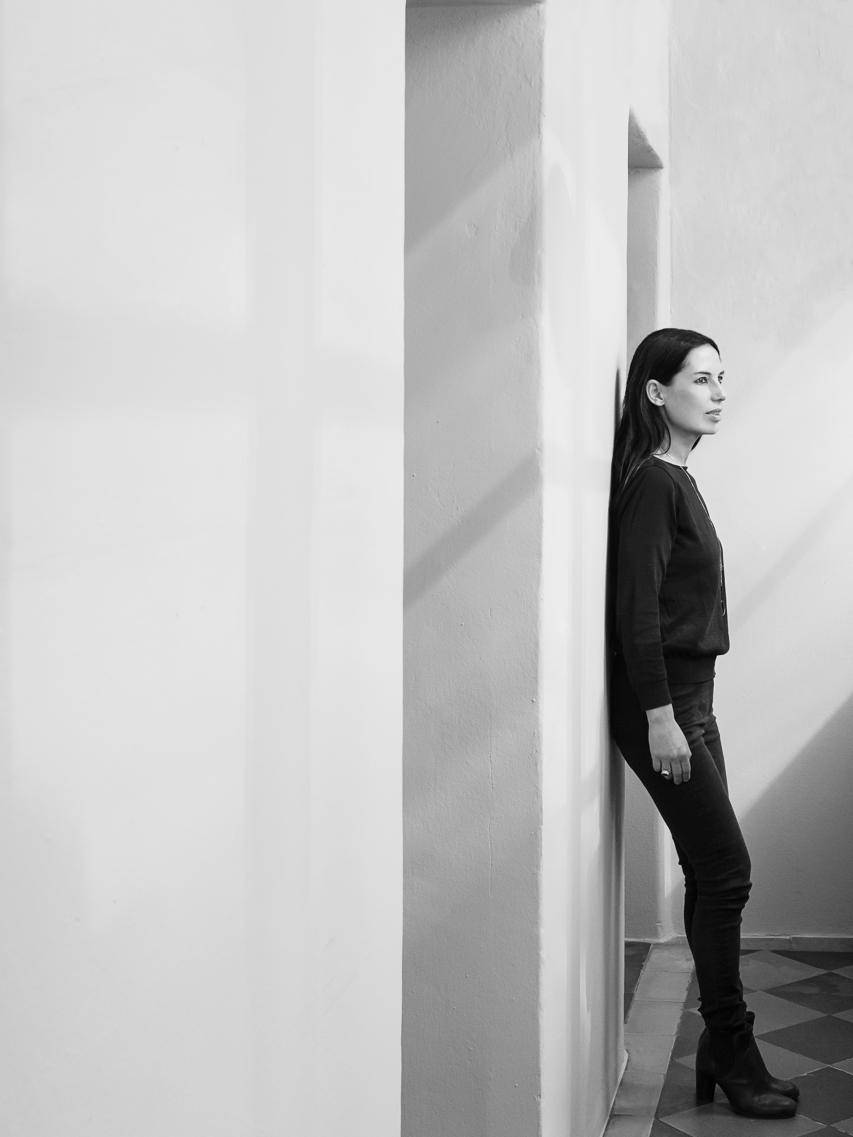 Essential lines and geometries are the distinctive features of her designs, giving to the space they are located in a deep scenographic feeling.
