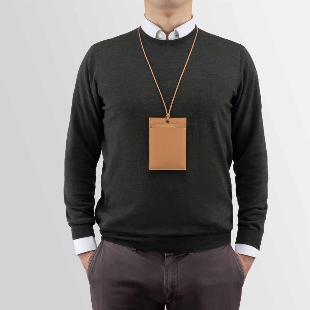 Genuine European leather two-piece cardholder. Smooth texture. Six card slots, external leather pouch and removable leather string.