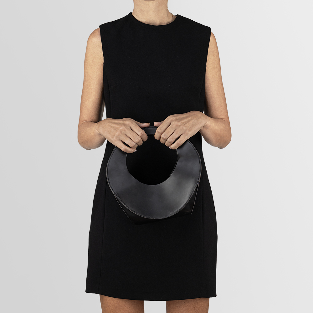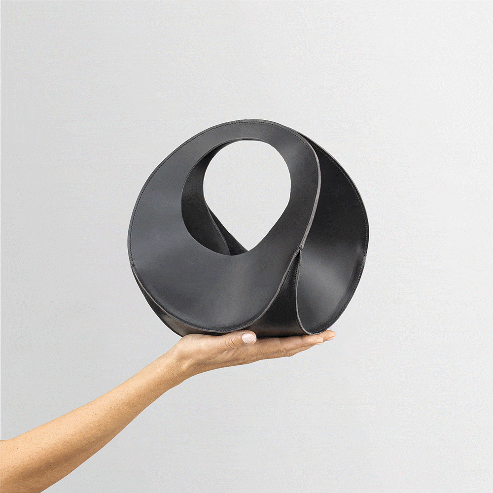 "The bag is inspired by a continuous movement of curves that loops around, generating volume and handles in a playful and elegant way - allowing multiple wearing and holding opportunities thanks to the symmetrical design."