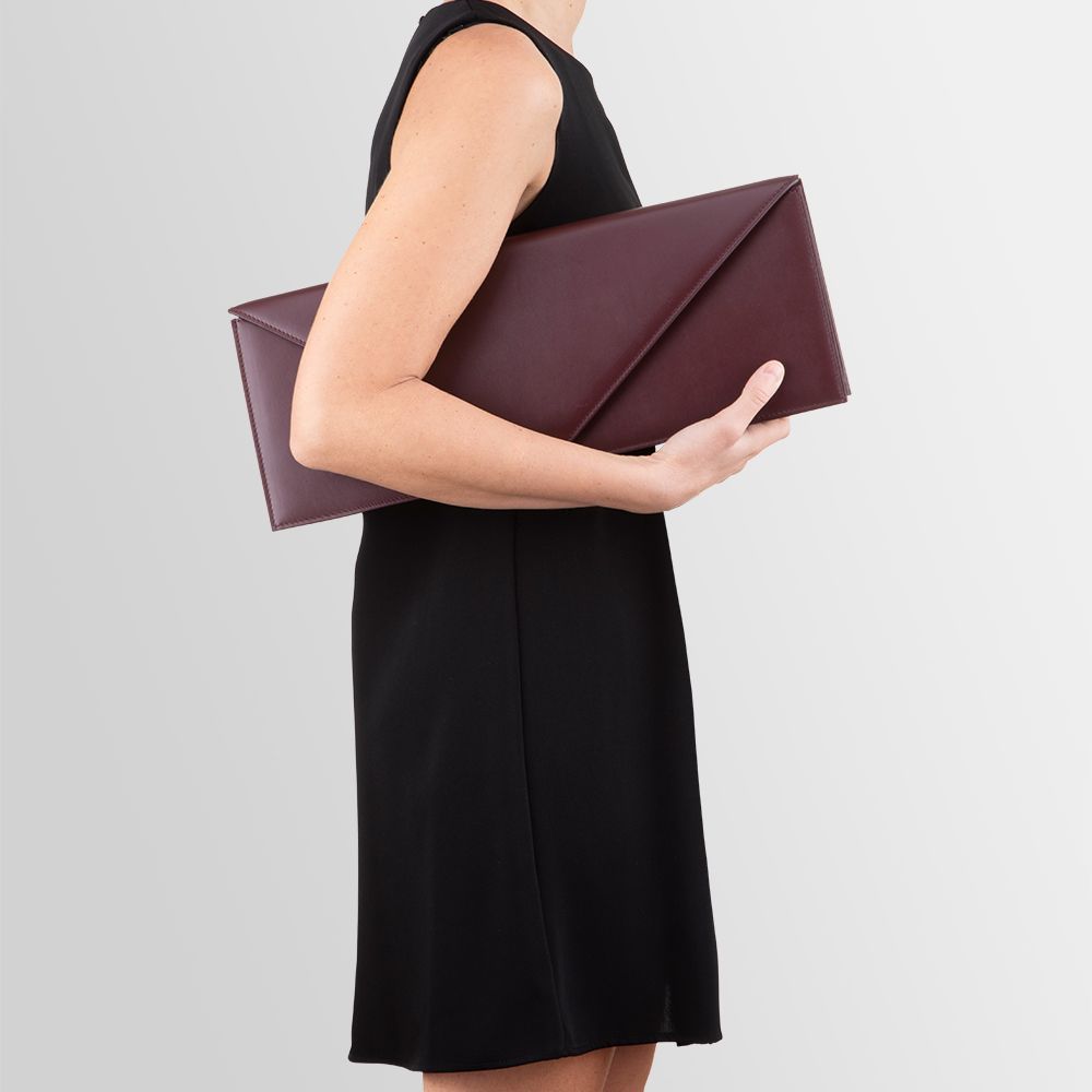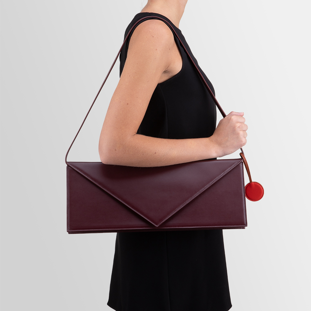 “Lettera”, inspired by the Bauhaus movement, is a bag made of rigorous and essential geometric lines that, through unusual volumes and proportions, expresses a strong and distinctive personality.