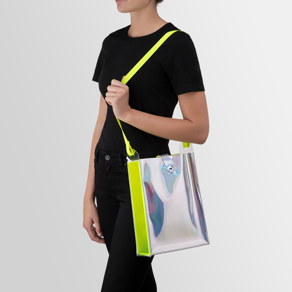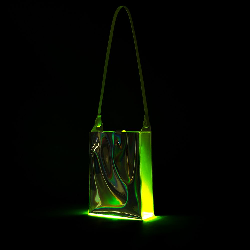 "it appealed to me to create a 'wearable' object for once, in addition to my artistic work: a bag that transports my artistic interests - I found that exciting, and also to show that the different colours - as with my artwork - evoke a completely different effect with the bags that, reinforced by the fluorescence, also has an influence on the person wearing it."