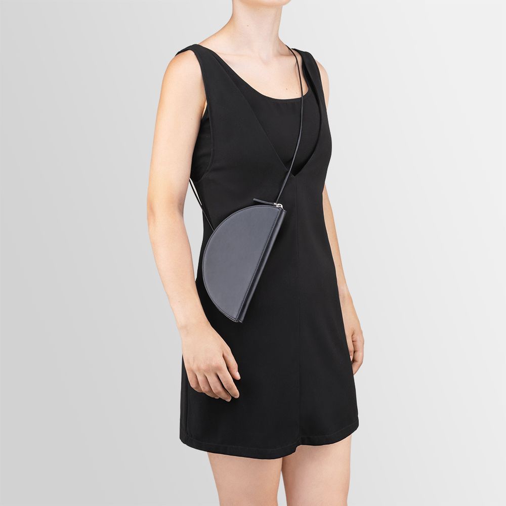 Minima was born as a study of form and function, in order to make chic and elegant an intuition and a marked stylistic trait. Sharp lines that eliminate the superfluous, from the square to the rhombus, from the half-moon to the circle shape, up to the sculptural version that unites the different forms. "I wanted to give strong personality to pure forms by attributing a function, an idea of style and a vision. Minima is a collection of bags going beyond the canons of traditional accessories. I imagine these bags worn by someone with an extremely personal and powerful style”