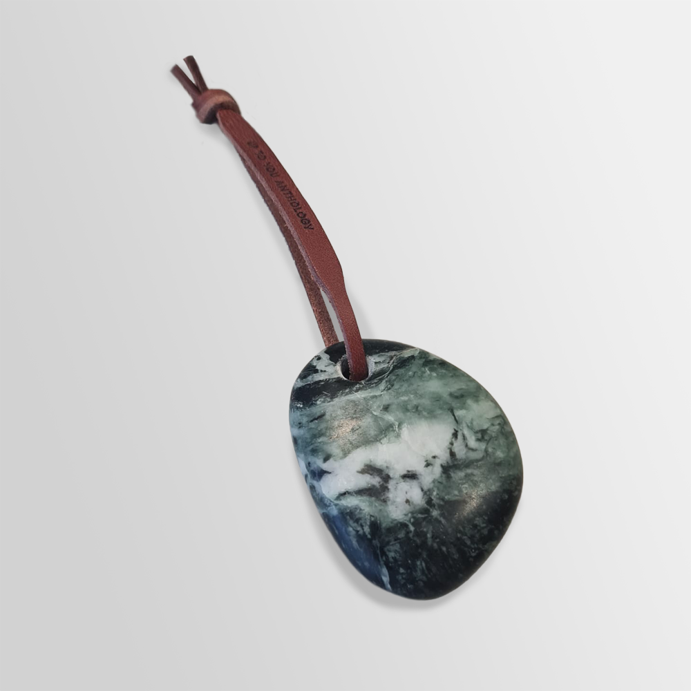 Keyring made from pure Carrara Marble. Equipped with removable Keyring and leather string.