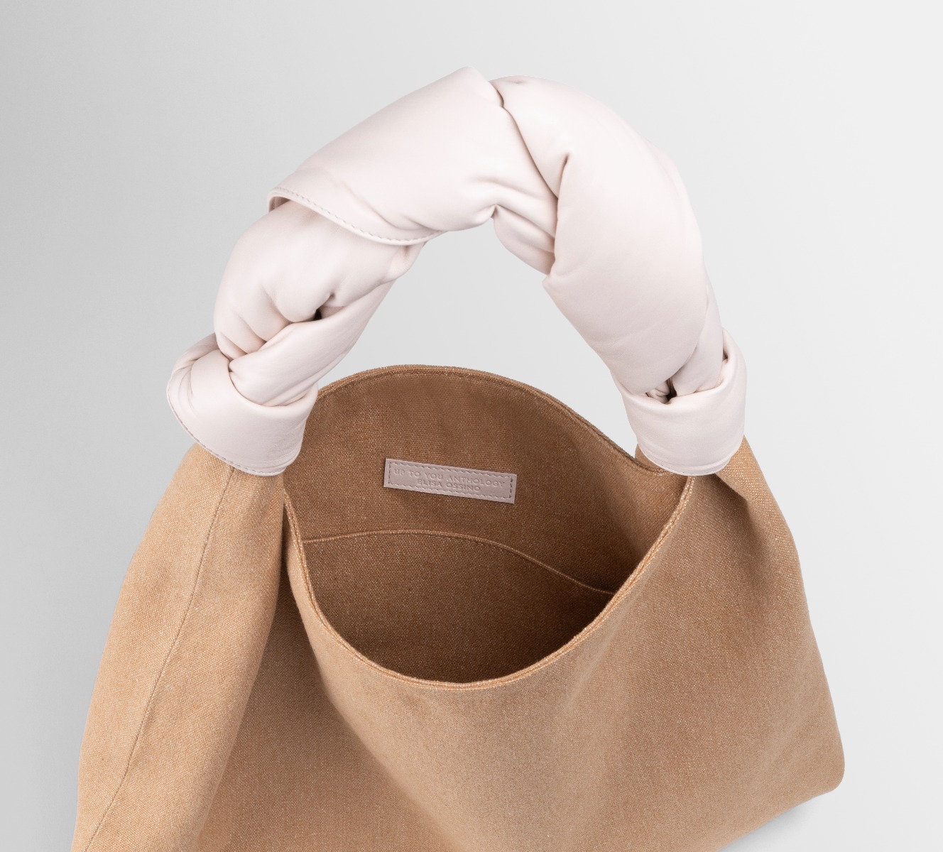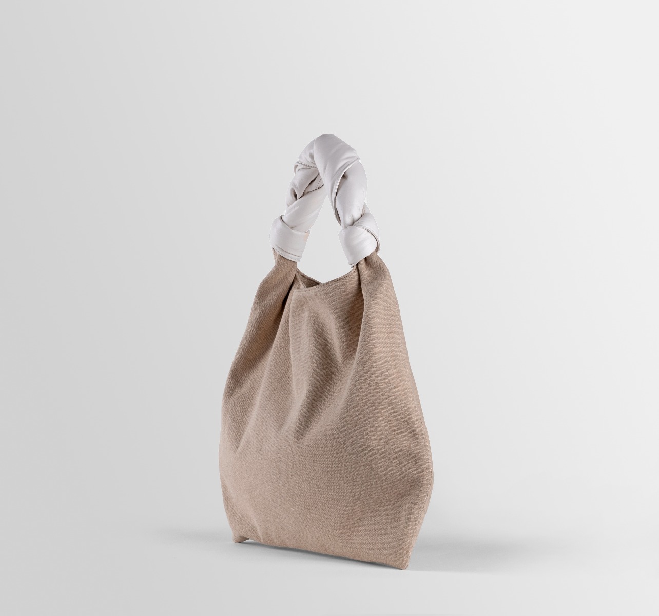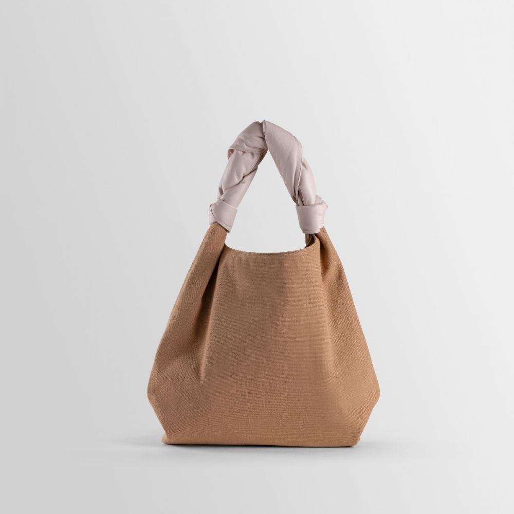 Sacca was inspired by the technique behind Furoshiki bags, made by knotting fabric by hand. It is characterized by its wide capacity and by the contrast between the texture of the canvas and the softness of the nappa leather. The soft woven handle makes it extremely comfortable and iconic.