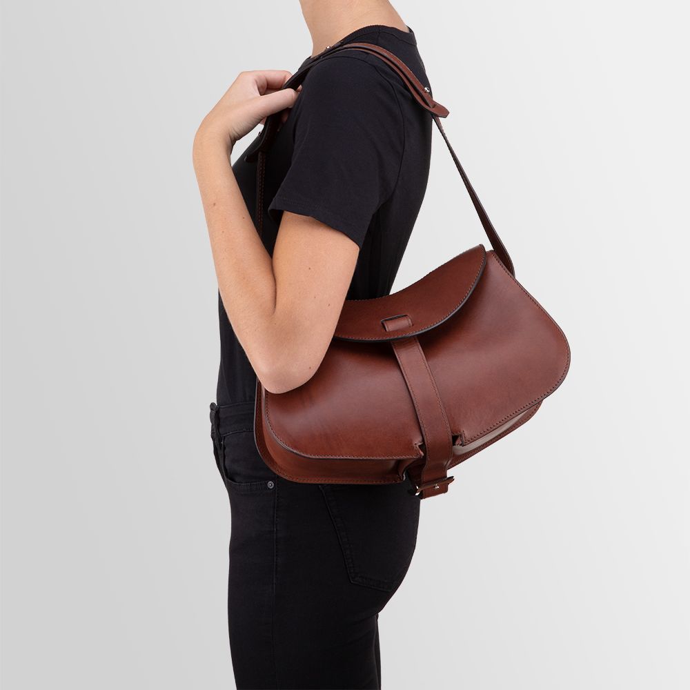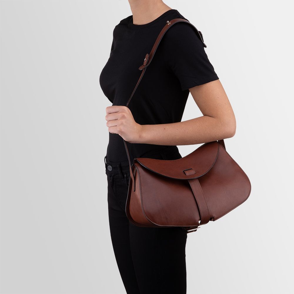 The bag is inspired by a horse saddle. The shape, the colours, the belt that can be opened from the bottom, are all inspired by this fascinating and evocative object.
