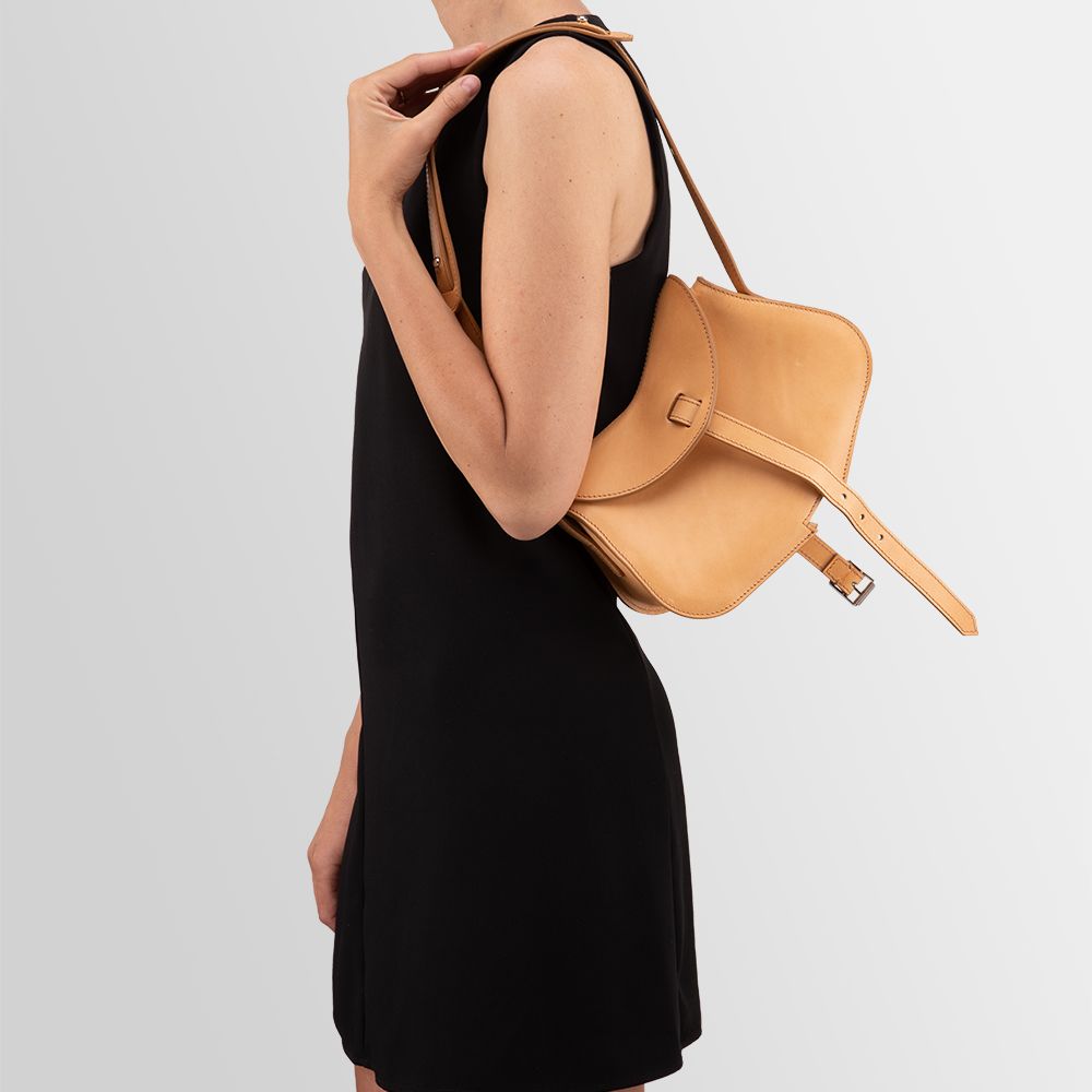 The bag is inspired by a horse saddle. The shape, the colours, the belt that can be opened from the bottom, are all inspired by this fascinating and evocative object.