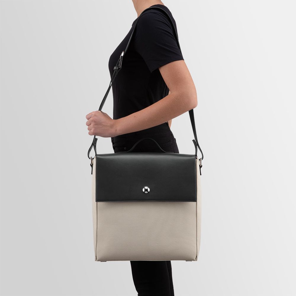 Bag, briefcase, and backpack all in one for work and leisure. A regular and timeless shape, attention to detail, and the use of materials. Adjustable straps and a handle for multiple carry options. A multipurpose product, suitable for all ages.