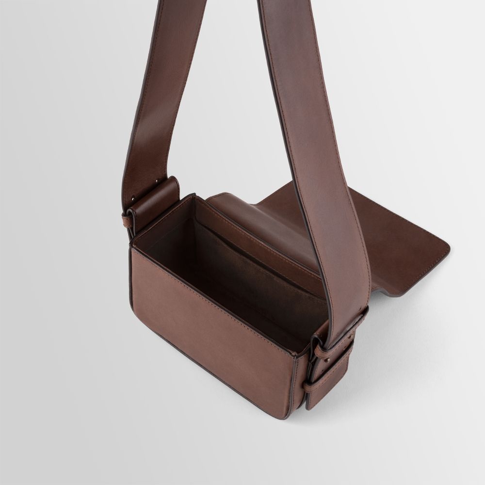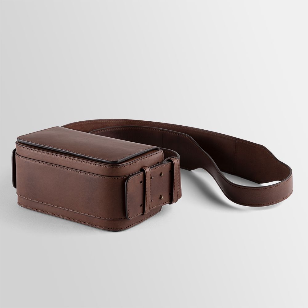 The inspiration for this bag comes from the typical tool bag used by carpenters or construction workers, as it is a popular shape that is able to convey a sense of longevity, a patina of tradition and history.